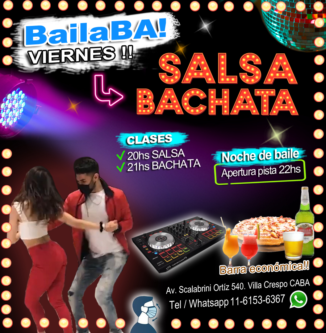 Llegas a Buenos Aires y querés salir a divertirte? BailaBA tiene la mejor noche porteña para vos. Ubicado en una zona totalmente estratégica donde miles de turistas se alojan en los alrededores. BailaBA, es el ambiente más cálido que podes encontrar y donde mejor te vas a sentir. Te ofrecemos las mejores y más divertidas clases de Salsa y Bachata, y un social que perdura hasta las 3 am del Viernes! «Noche de Salsa y Bachata para turistas y locales».